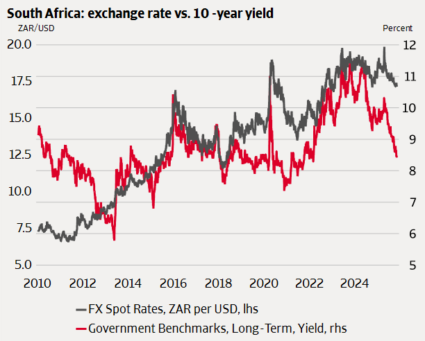 A meaningful uptick in growth requires more. Reform delivery is likely to be slow, hampered by tensions within the GNU, while current plans lack ambition in areas critical for private investment, such as business regulation and labor market flexibility. These reforms face ideological resistance within the ANC, making near-term progress unlikely.